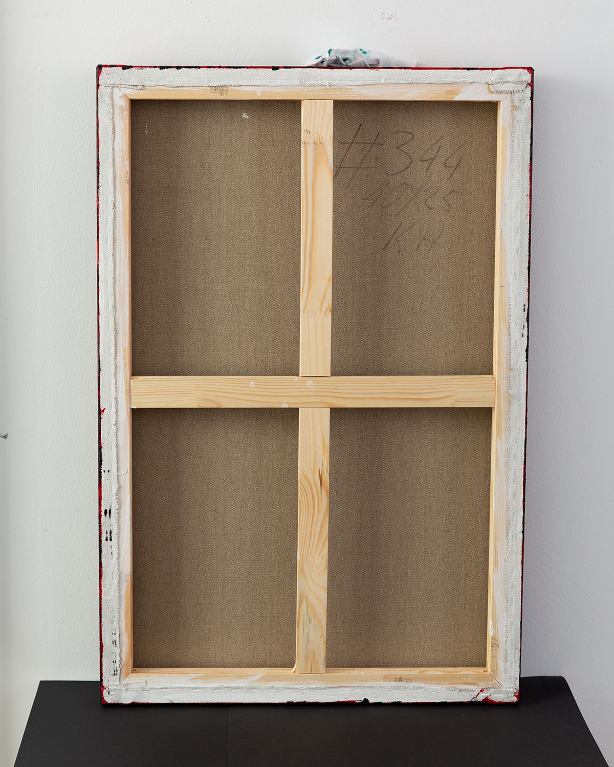 Obwohl das Gemälde aus mehreren dünnen Schichten besteht, bleibt die Struktur des natürlichen Leinens gut sichtbar, außer auf den schwarzen Flächen, die rau und pastos gemalt sind.