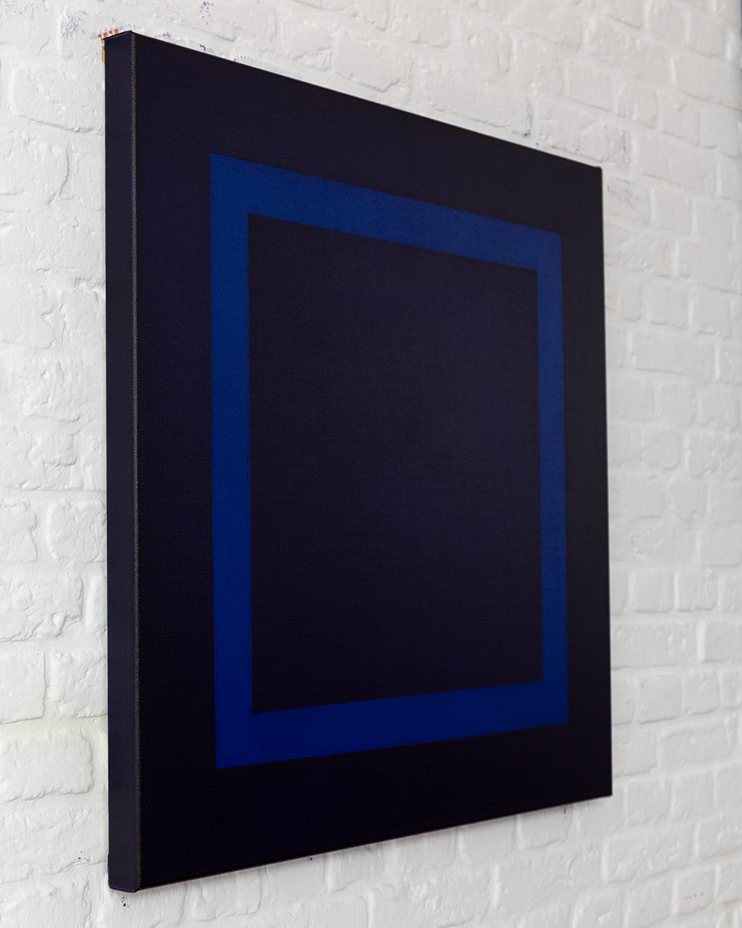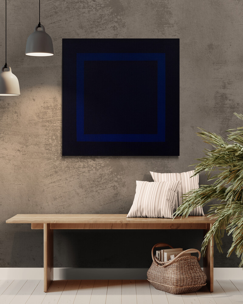 A clear, reduced form creates a quiet tension between field and frame. Subtle tonal variations reveal depth that unfolds through sustained viewing.